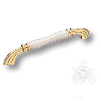 Ручка скоба 1905-61-160-L PEARL, материал Замак Керамика, цвет Перламутр, отделка Золото Керамика, 33*20*194 мм